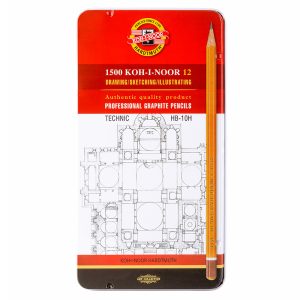Set lápices de grafito en caja metálica, graduaciones: 2H HB 2B 4B 6B 8B