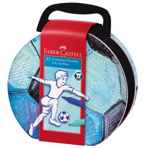 Caja metálica pelota de fútbol de 33 rotuladores Faber Castell