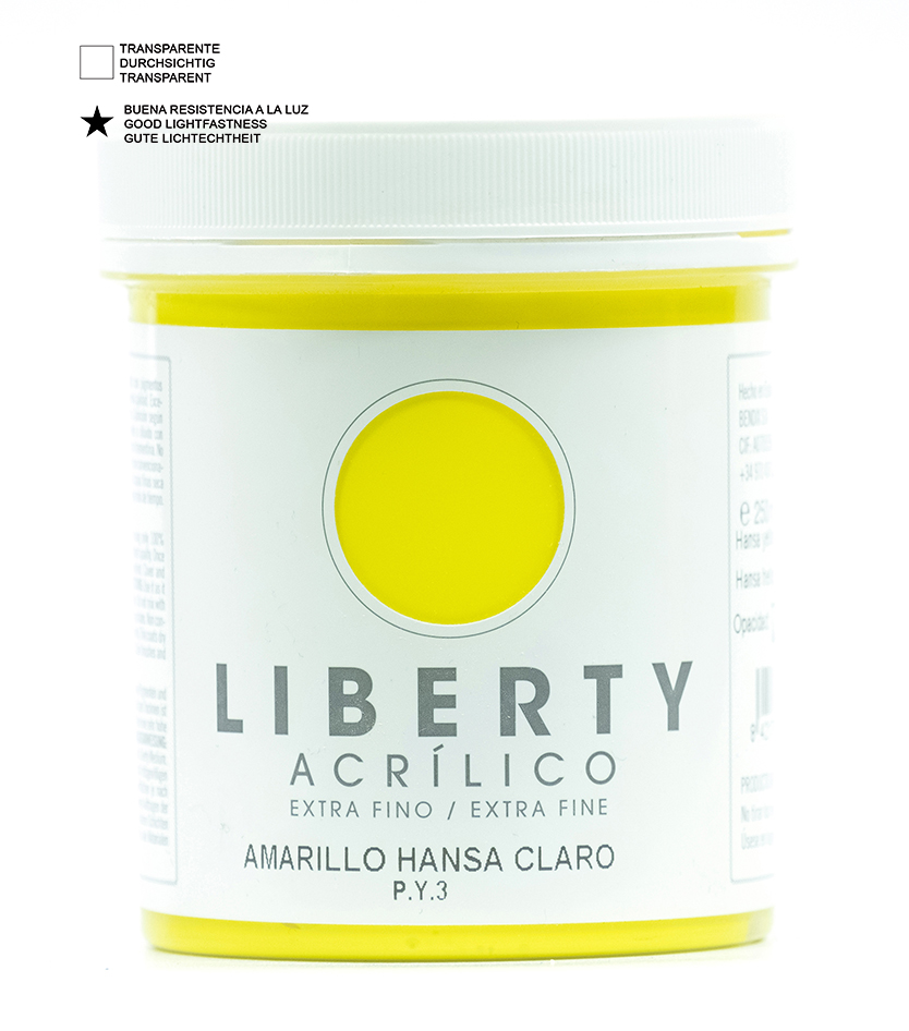 Las pinturas acrílicas “LIBERTY” están fabricadas con pigmentos sólidos de gran calidad y con resinas acrílicas puras al 100%, por lo que son especialmente versátiles y adecuadas para todas las técnicas de pintura artística, diseño y decoración, son ideales para grandes murales y grandes superficies.
